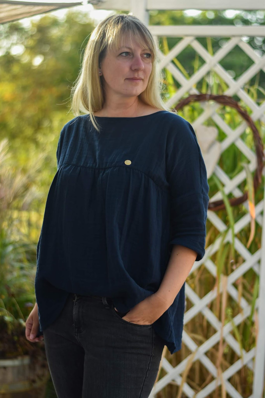 Nur kleine Dinge und schon habe ich eine neue Lieblingsbluse. Der Musselin ist angenehm zu tragen, hat meine Farbe (navy), weich und durch den Crinklelook bügelfrei! Ha genau das richtige für mich.